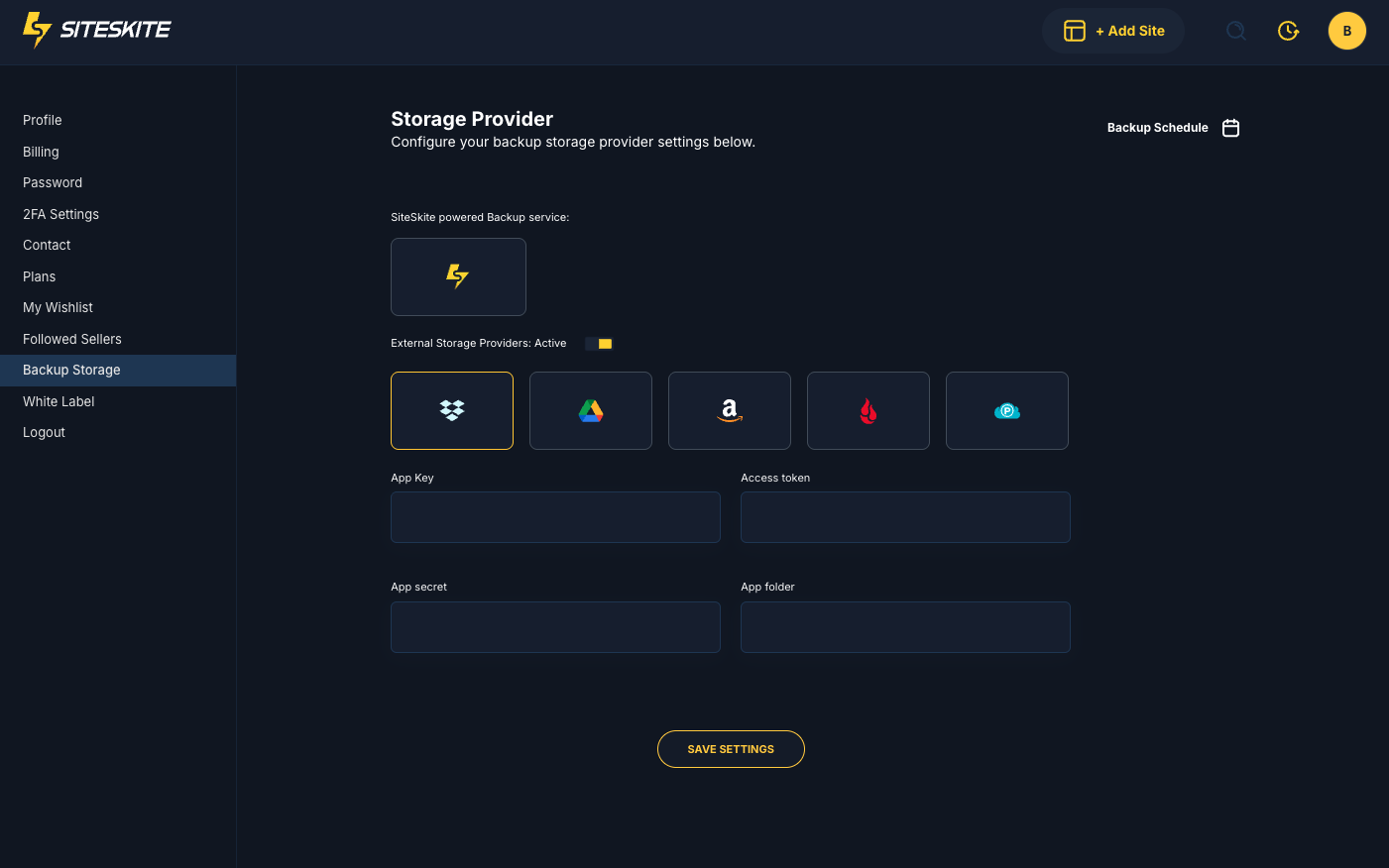 SiteSkite lets you use Dropbox as a backup storage provider so your WordPress backups are safe and accessible anytime. Follow the steps below to connect your Dropbox account.