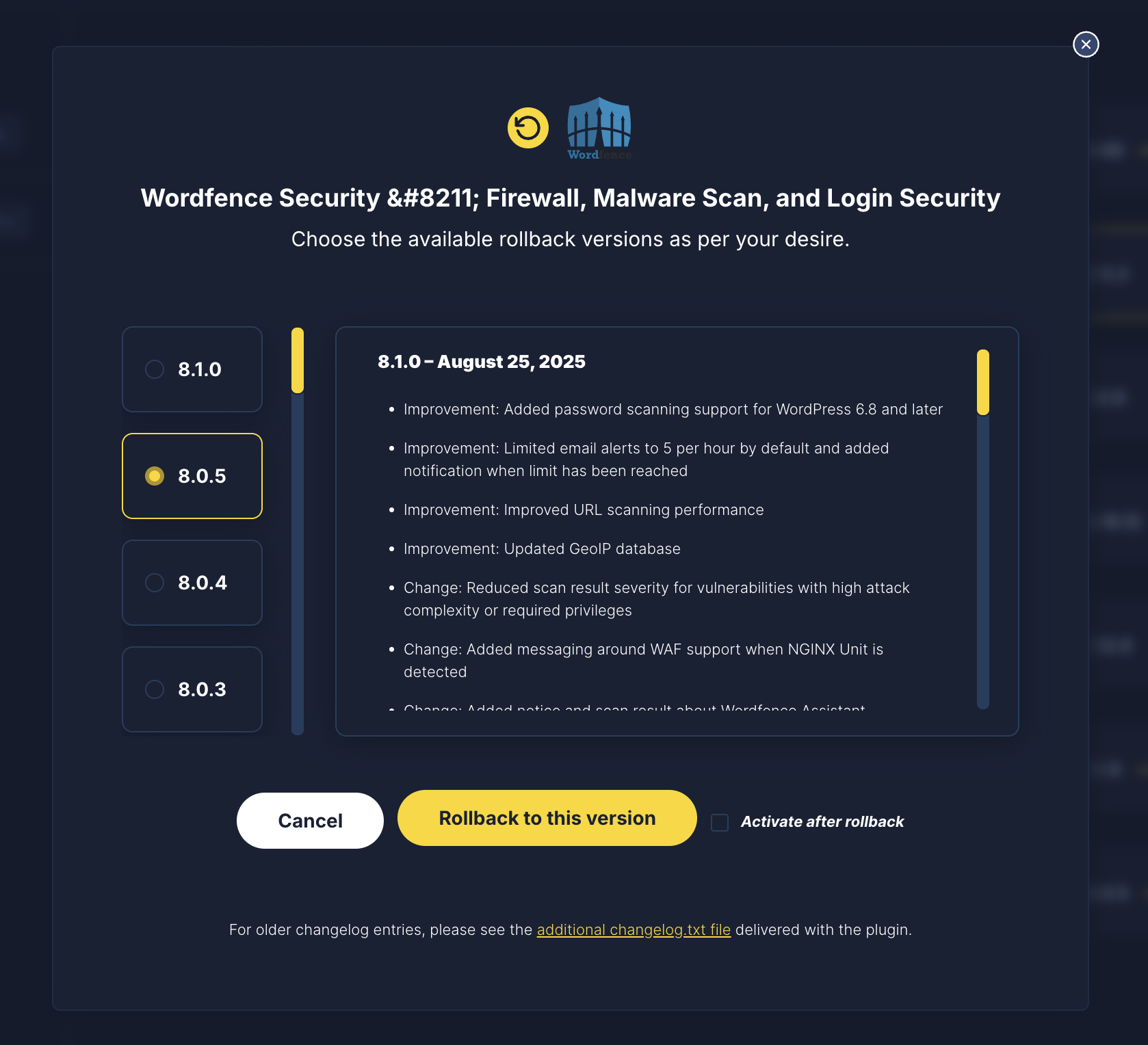 With Rollback, you can safely undo problematic updates and keep your site stable.
