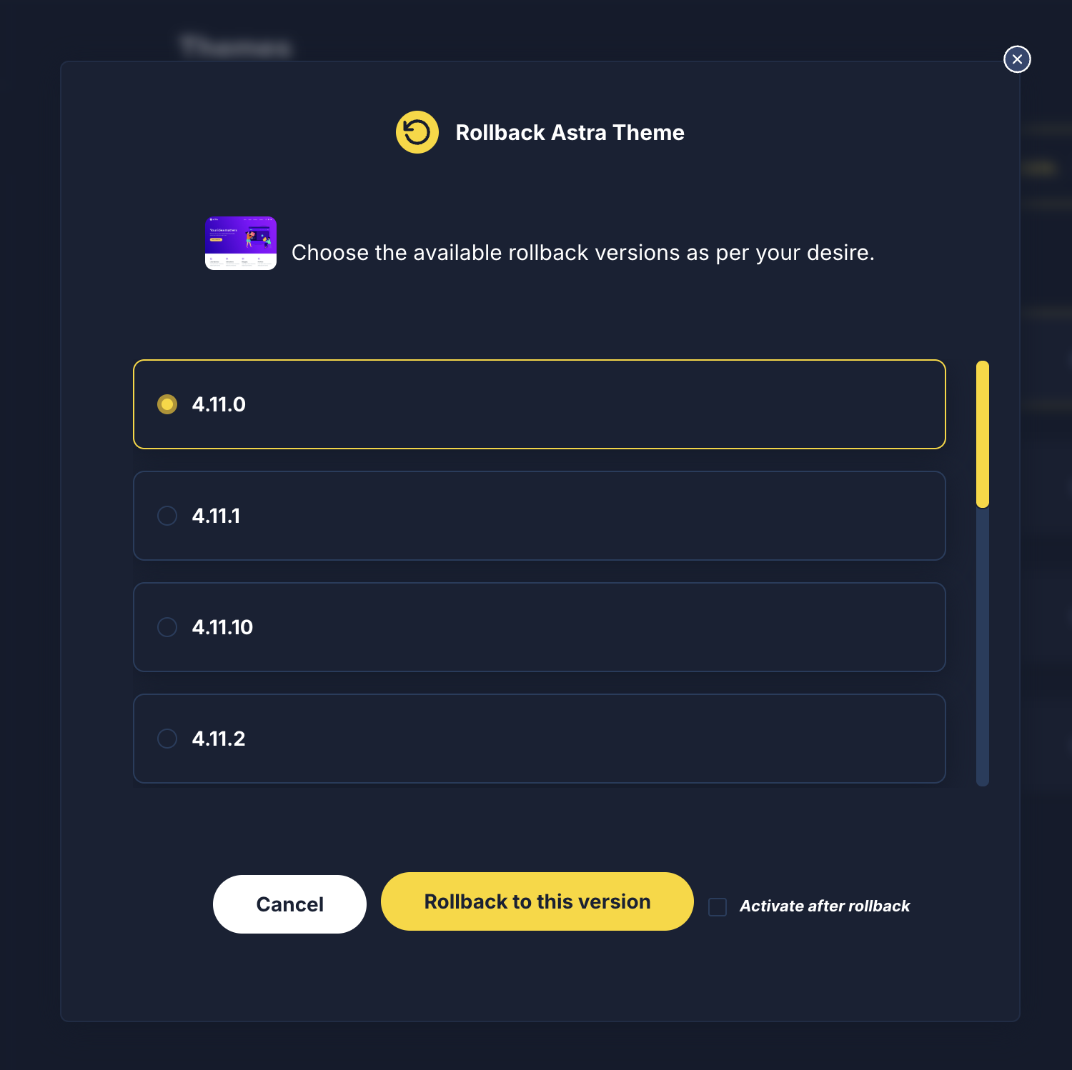 Backup First → Always run a backup before rolling back a theme or plugin.