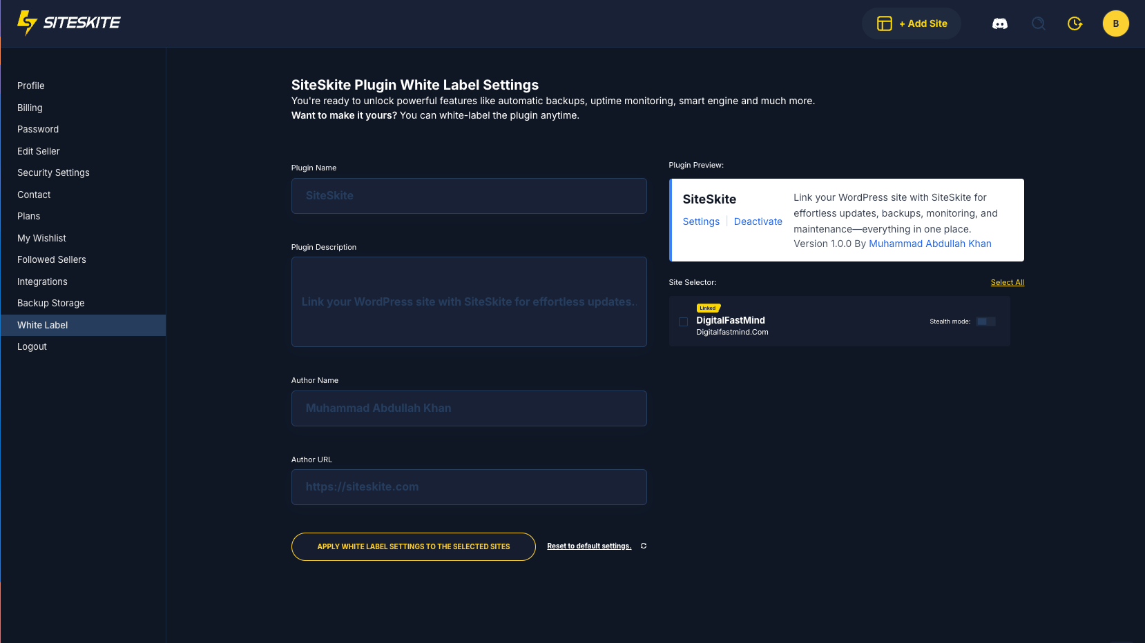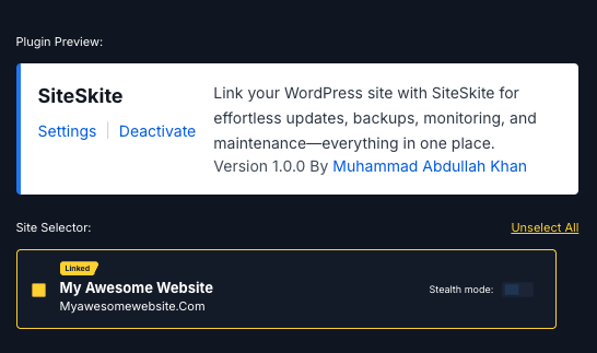 ⚠️ Use this carefully—once Stealth Mode is active, you can only manage the plugin through your SiteSkite portal.