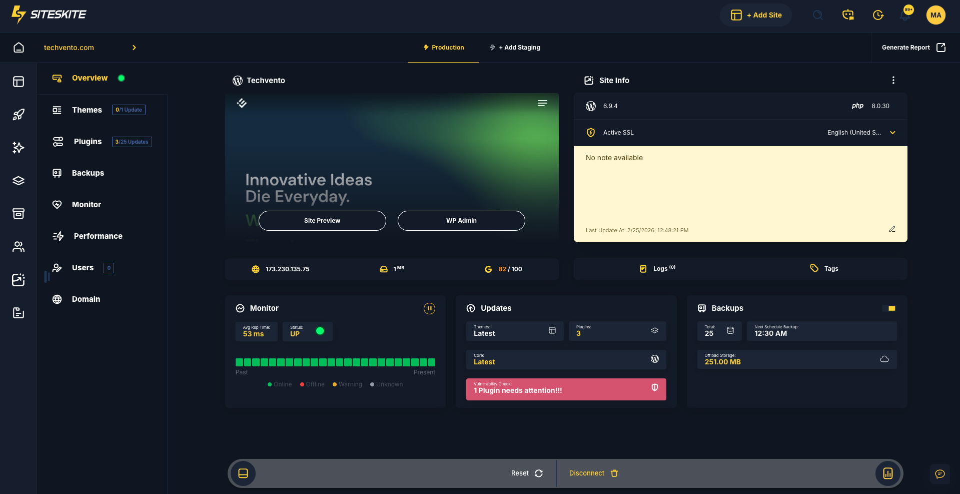 The Production & Staging Environments in SiteSkite transform how you manage WordPress sites.
