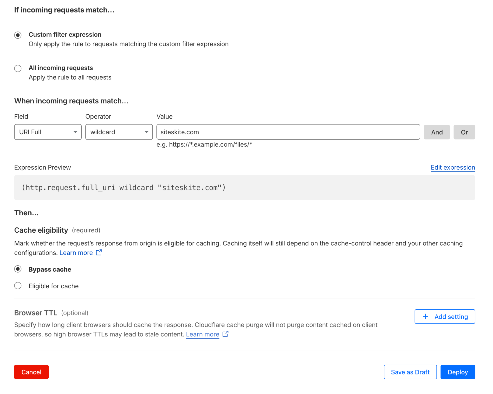 The exact Cloudflare rule